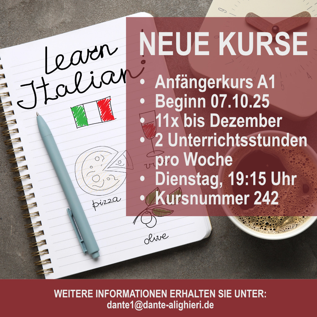Lernen Sie Italienisch bei der Sprachschule "Dante Alighieri", seit über 90 Jahren eine Garantie für erfolgreiches Lernen. Hier finden Sie mehr Informationen zu unseren Kursen: