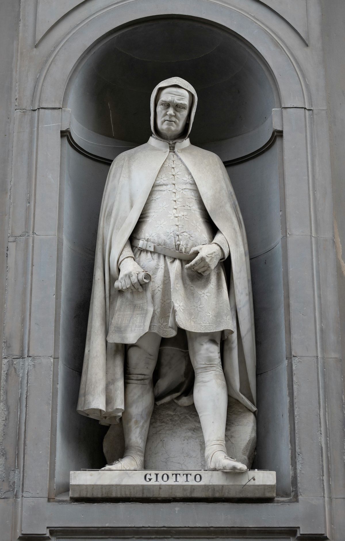 Er stößt inmitten der Gotik eine Tür in die Zukunft auf- er lässt die Byzantinismen hinter sich, der Himmel wird blau, die Figuren bekommen Volumina und Mimik sowie Körpersprache, die Komposition wird geordnet und monumentalisiert. Die Cappella degli Scrovegni in Padua 1306 ist sein Hauptwerk, Assisi markiert eine Vorstufe, in Florenz hinterlässt er späte Spuren. Etliche Künstler folgen ihm nach, andere Kollegen verharren in den Traditionen, am Ende aber reichen seine Anregungen bis in die frühe Renaissance hinein.